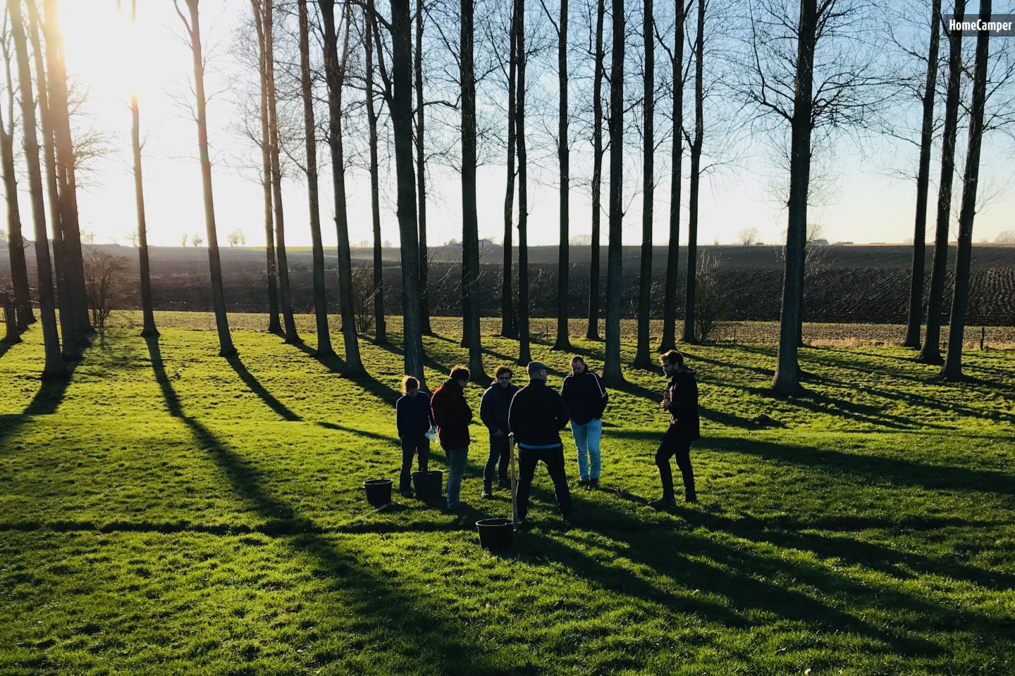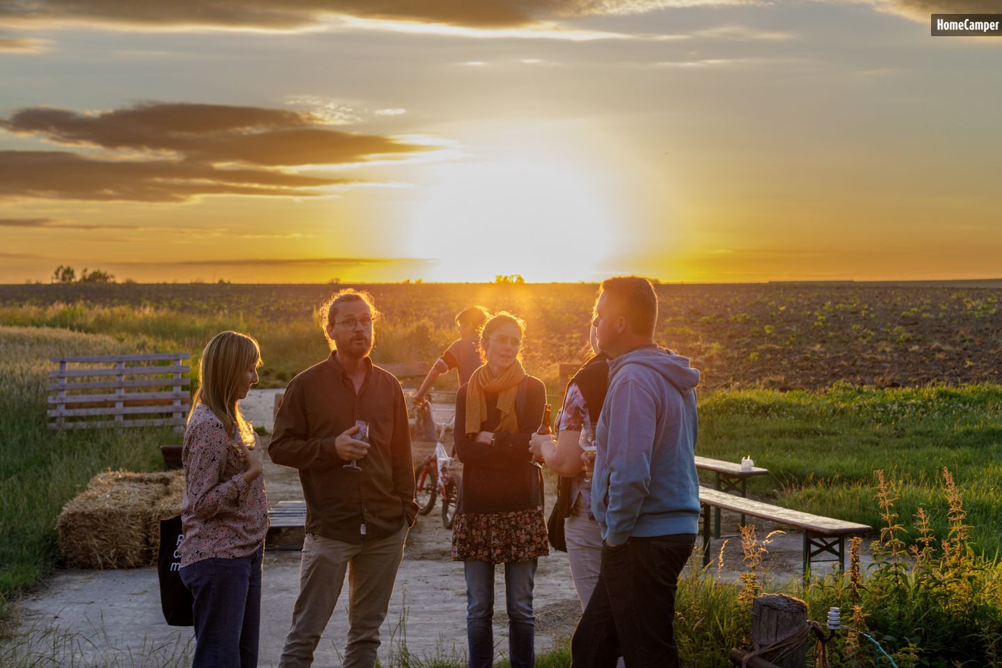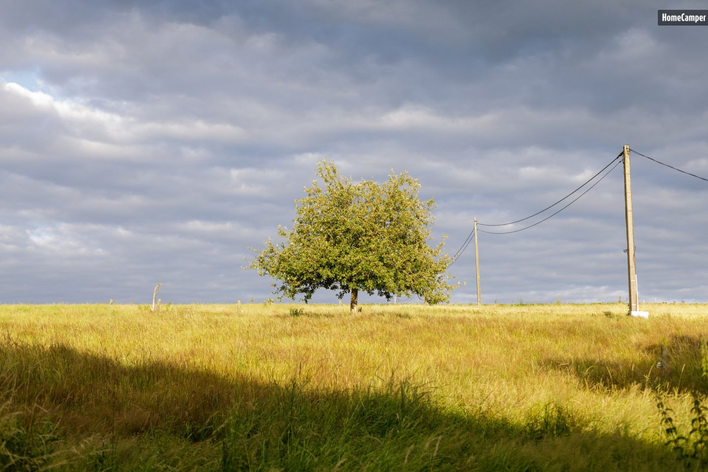 C'est un espace en bordure des prés et d'une forêt de peupliers, avec vue sur la campagne et le coucher de soleil. C'est l'occasion de se reposer et découvrir les lieux. Les véhicules peuvent aussi s'installer sur les surfaces bétonnées qui offre également une jolie vue.